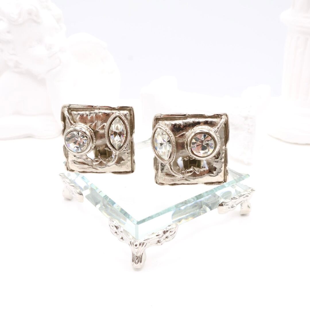 【フランス買付】1970s ヴィンテージ シルバーアブストラクト クリスタルイヤリング