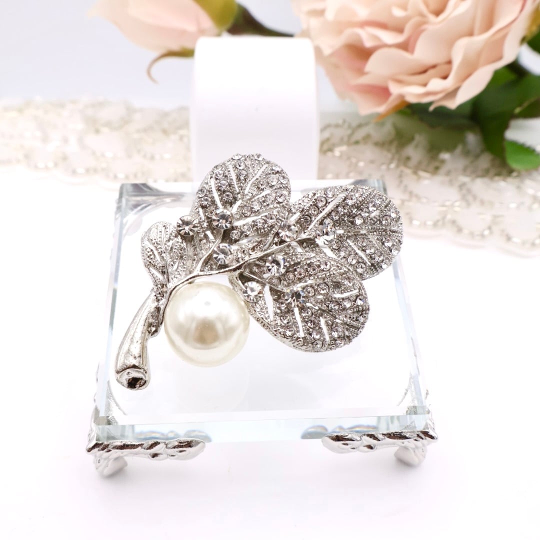 この フランス製リーフ&パールブローチ が、