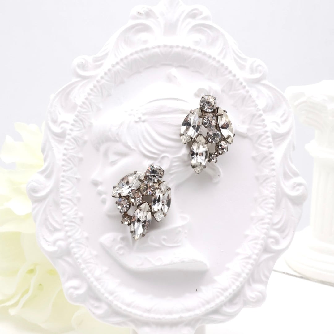 【アメリカ買付】1950s-1960s ヴィンテージ フラワーモチーフラインストーンピアス