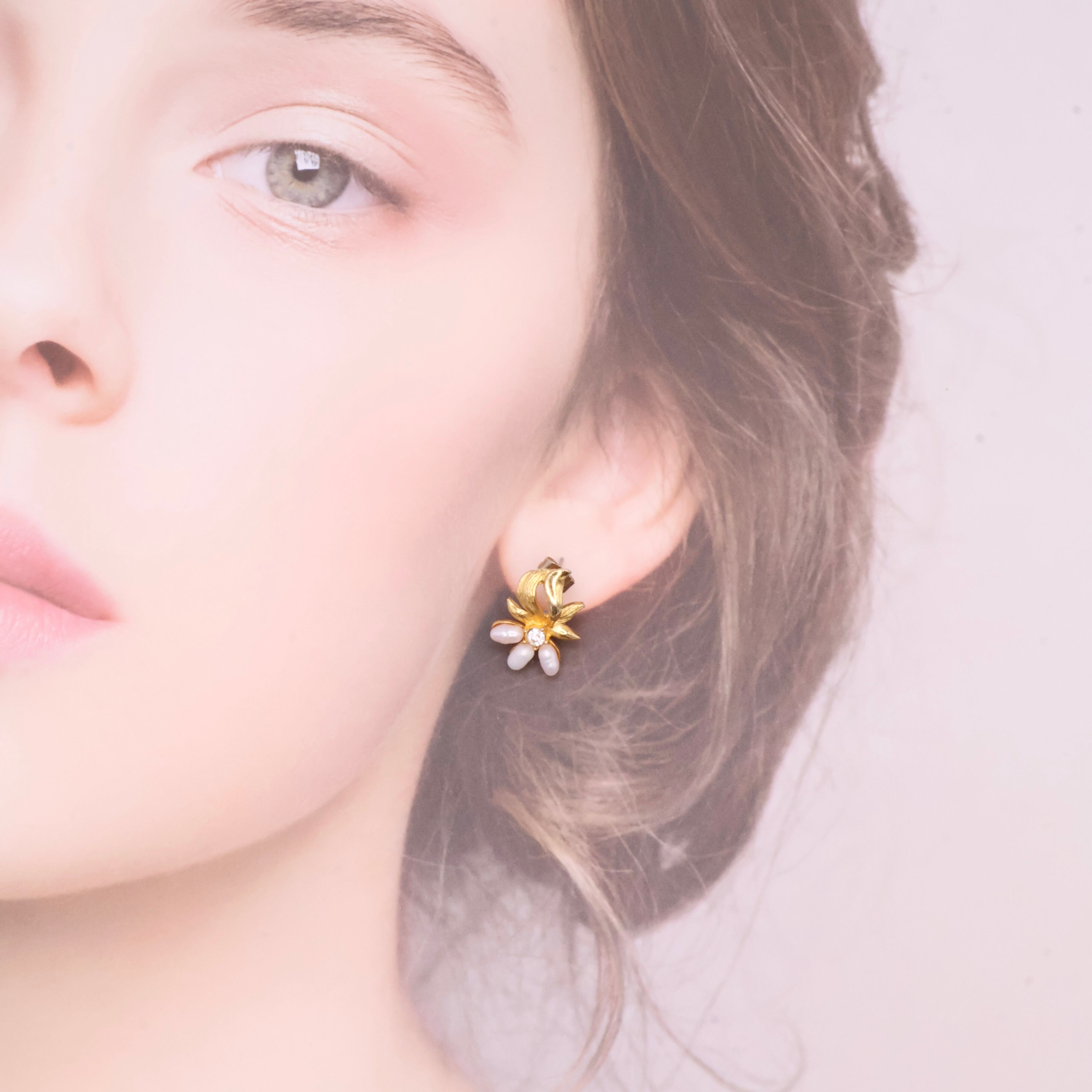 【アメリカ買付】1980s DS刻印 パール × クリアラインストーン フラワーモチーフピアス