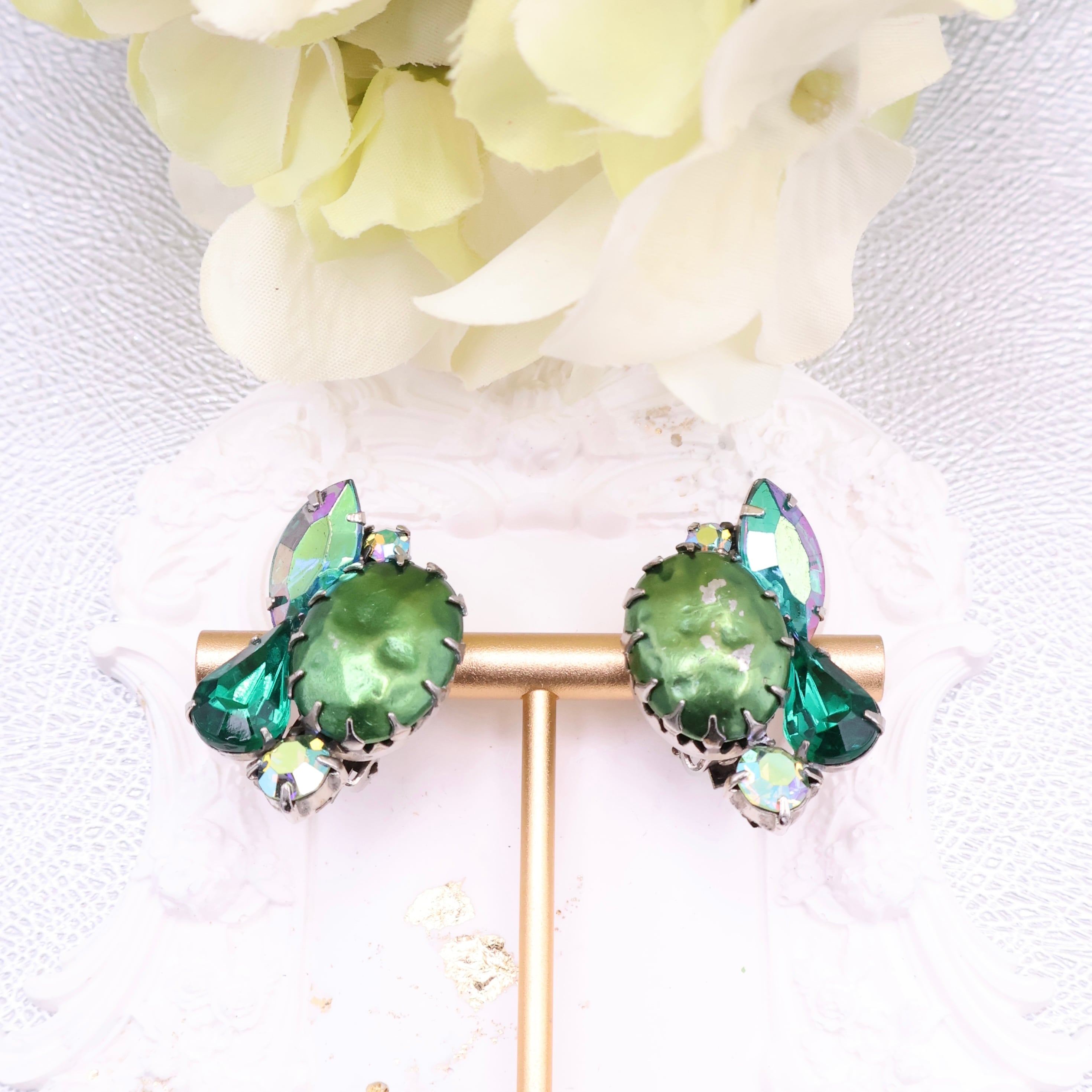 【アメリカ買付】1950s–1960s ヴィンテージ グリーンカボション × オーロライヤリング