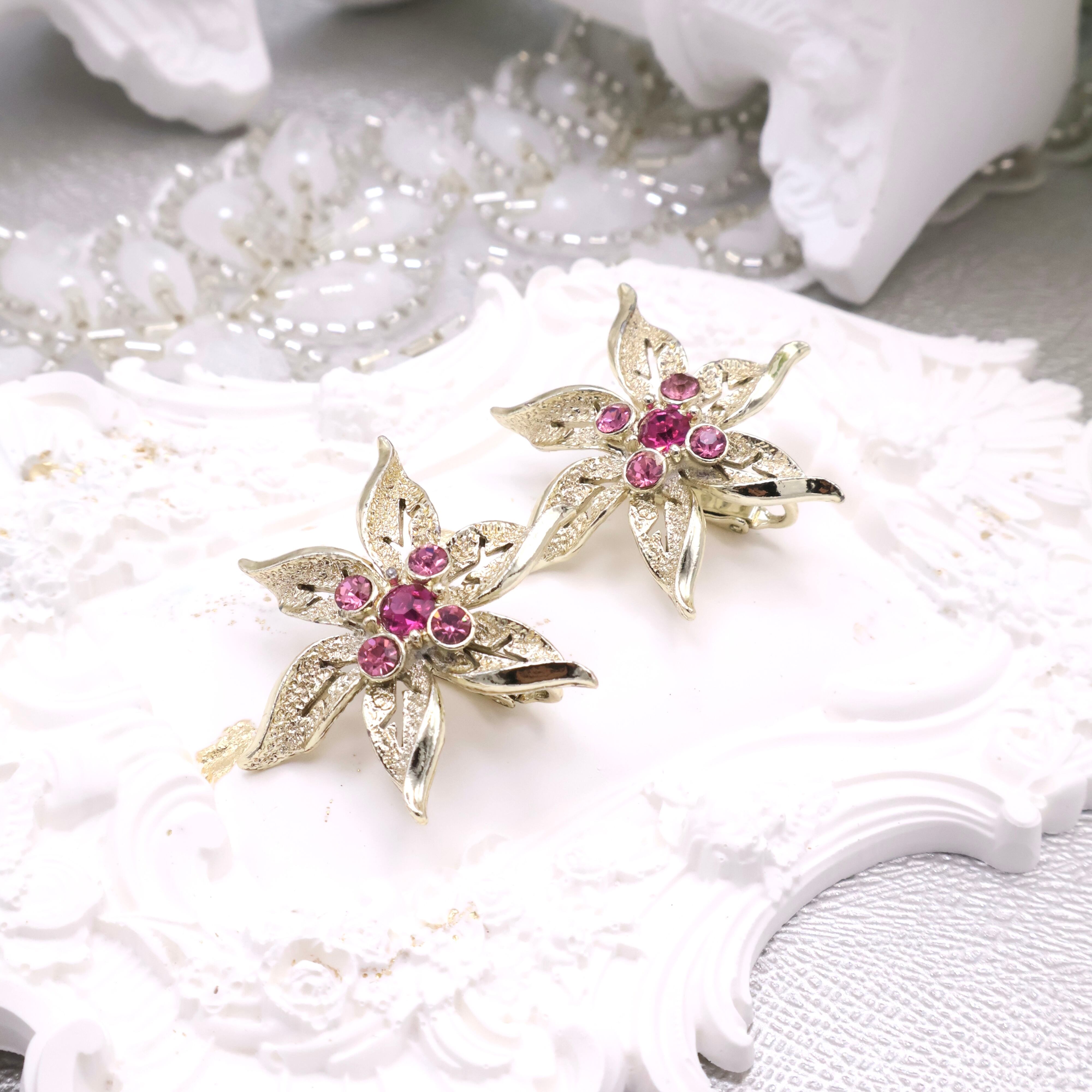 【Sarah Coventry 】1960s–1970s ヴィンテージ フラワーモチーフ ラインストーンイヤリング