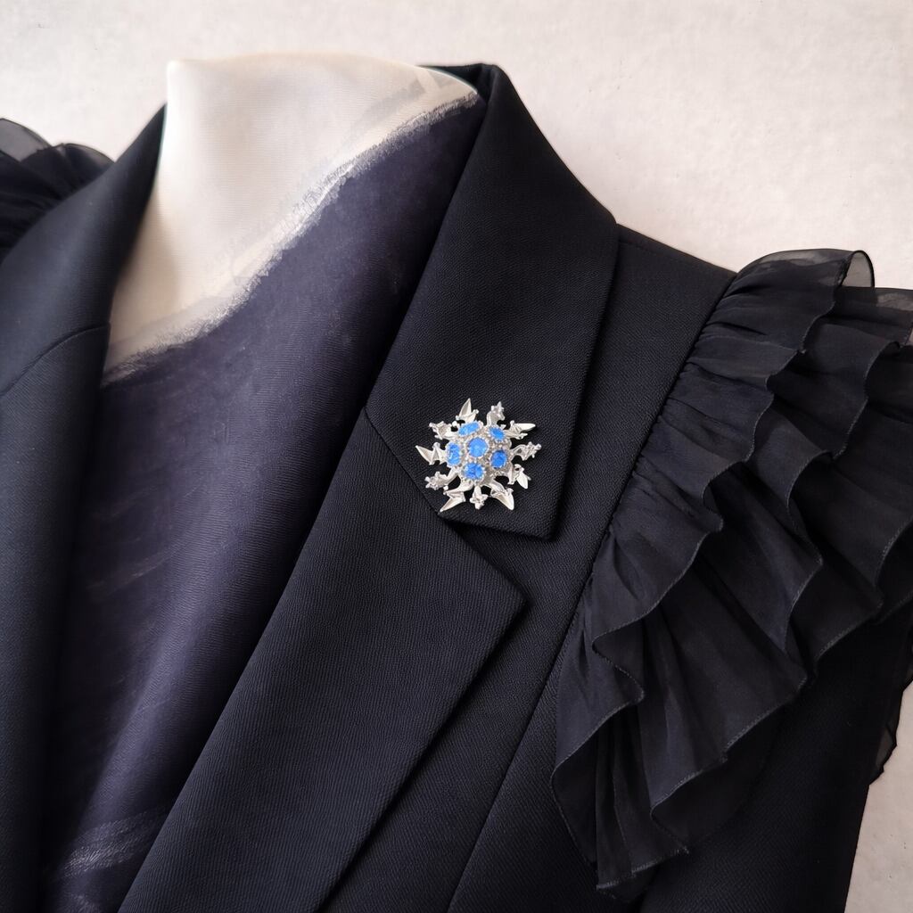 ブルーラインストーンの透明感ある輝きが、装いに凛とした印象と個性を添えてくれる一品です。