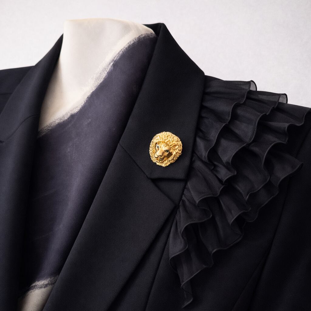 ジャケットやコートの襟元に添えるだけで、装いの主役になるインパクトあるアクセントに。