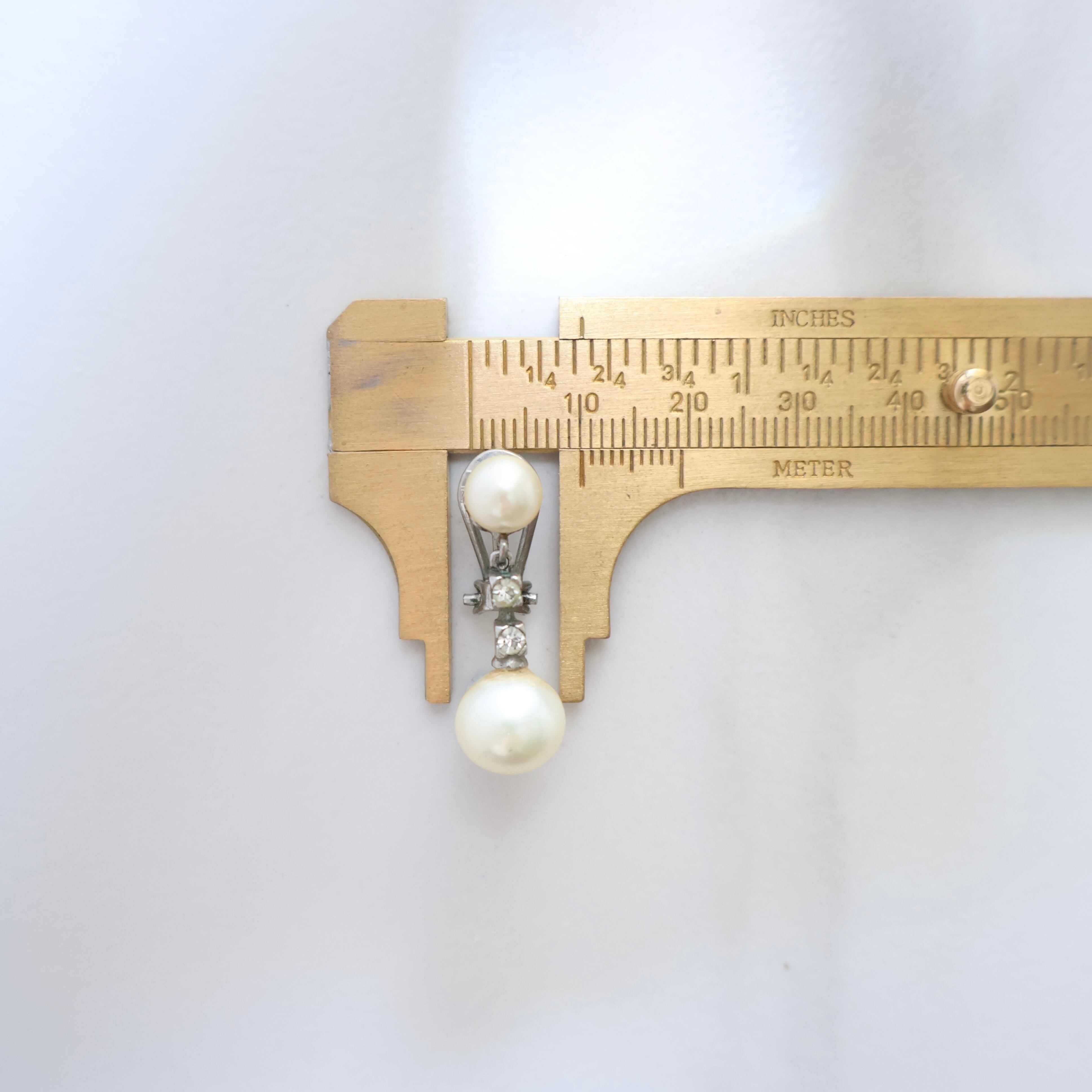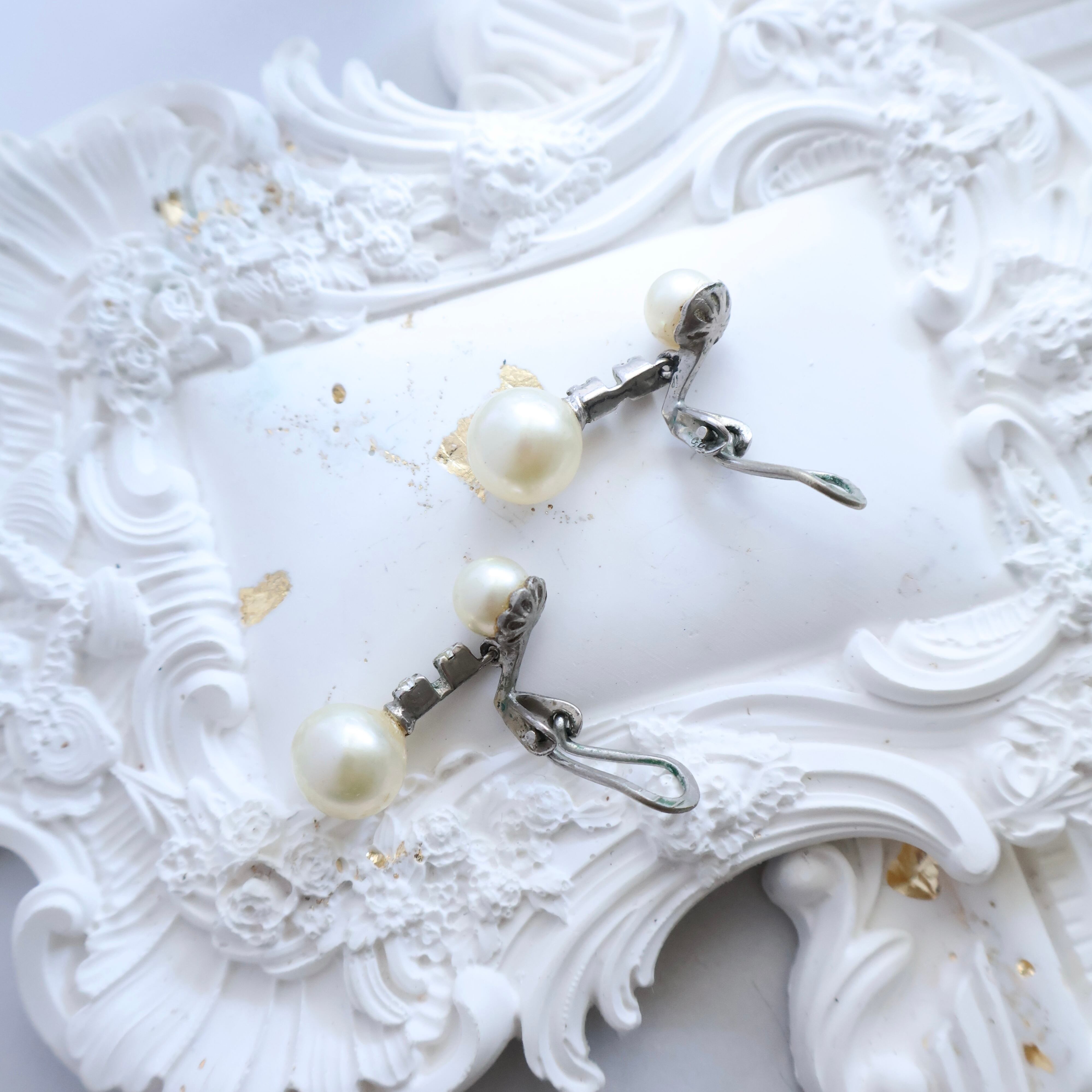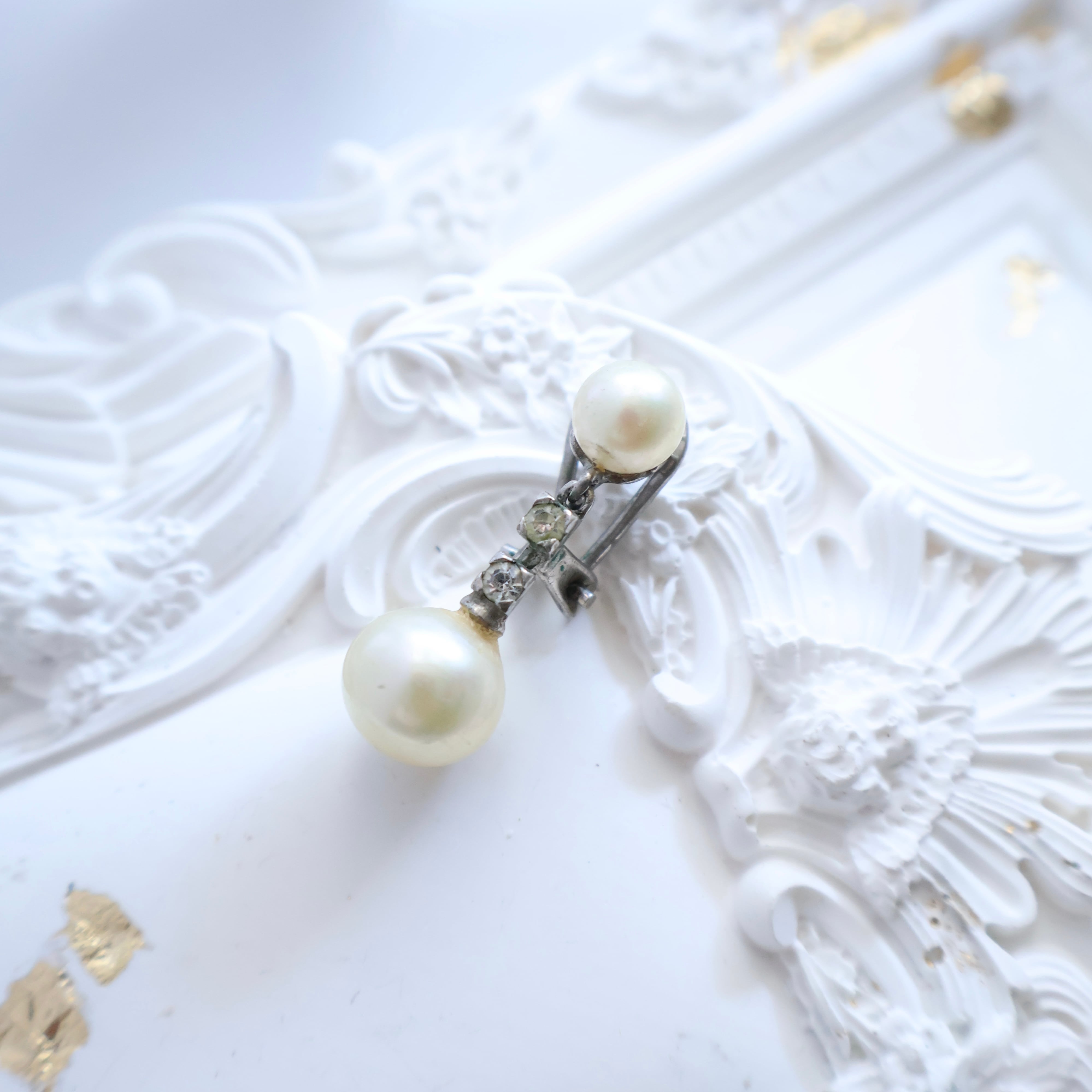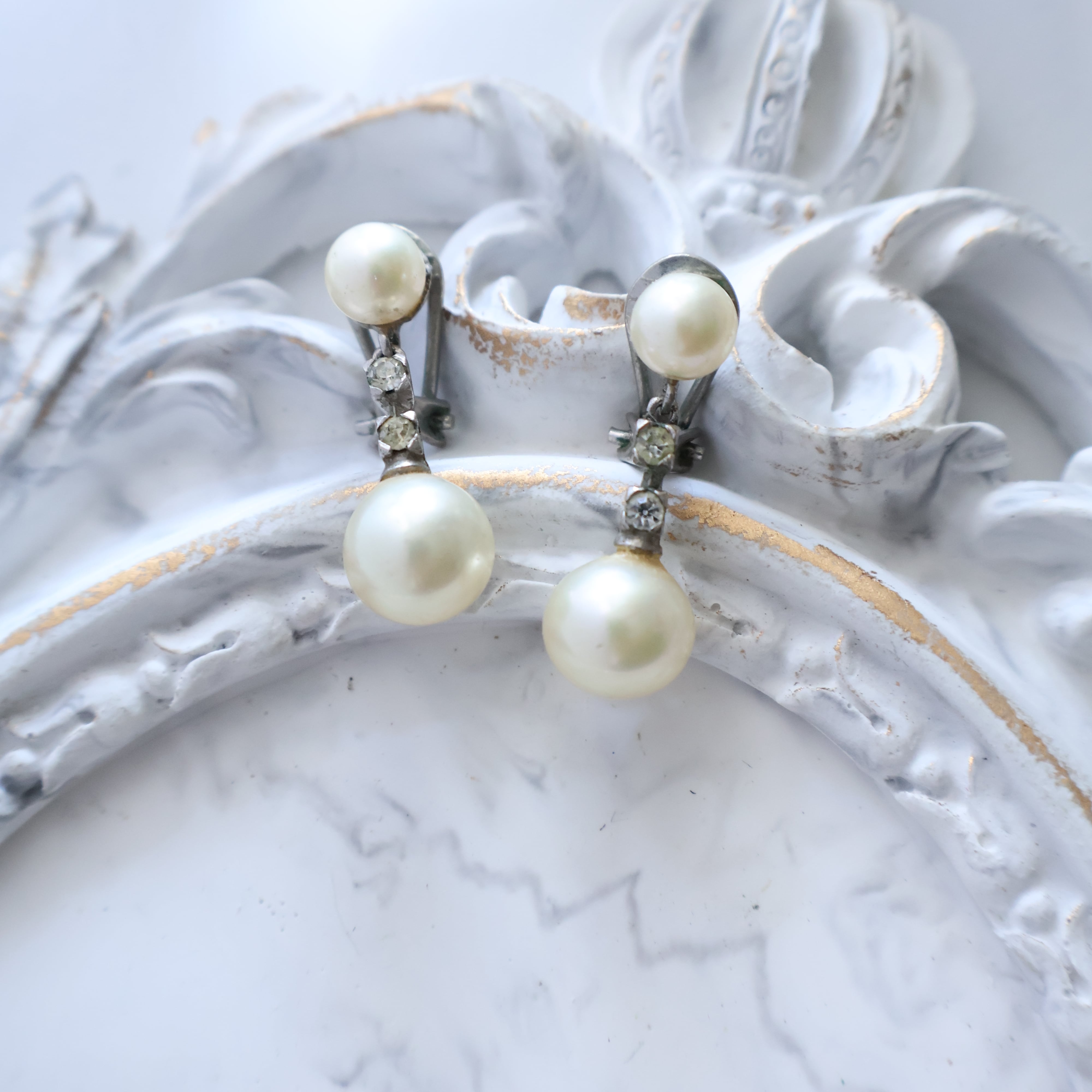 【フランス買付】1980s ヴィンテージ パール&ラインストーン ドロップイヤリング