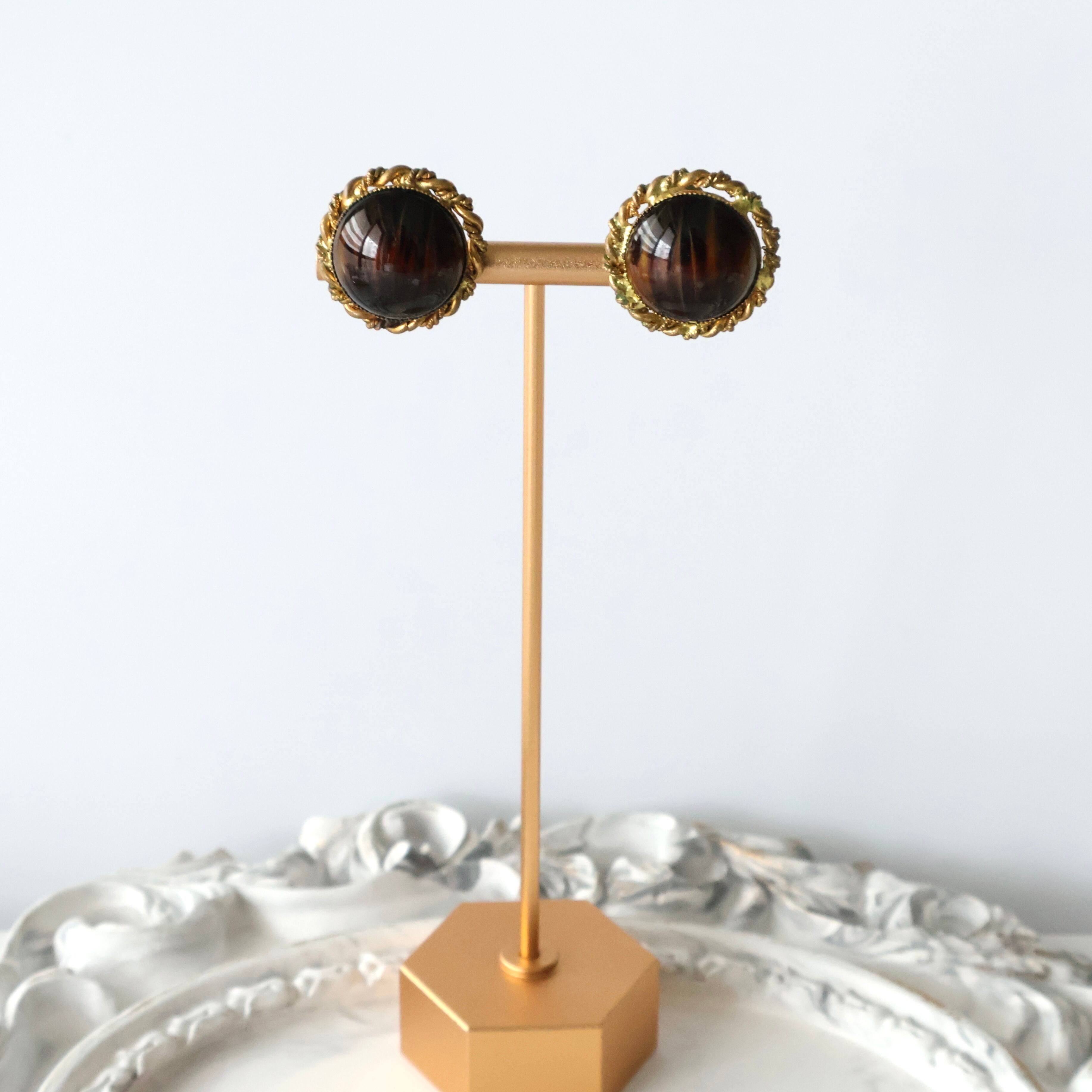 フランスのヴィンテージマーケットで見つけた、不思議な光の筋を宿したラウンドイヤリング。