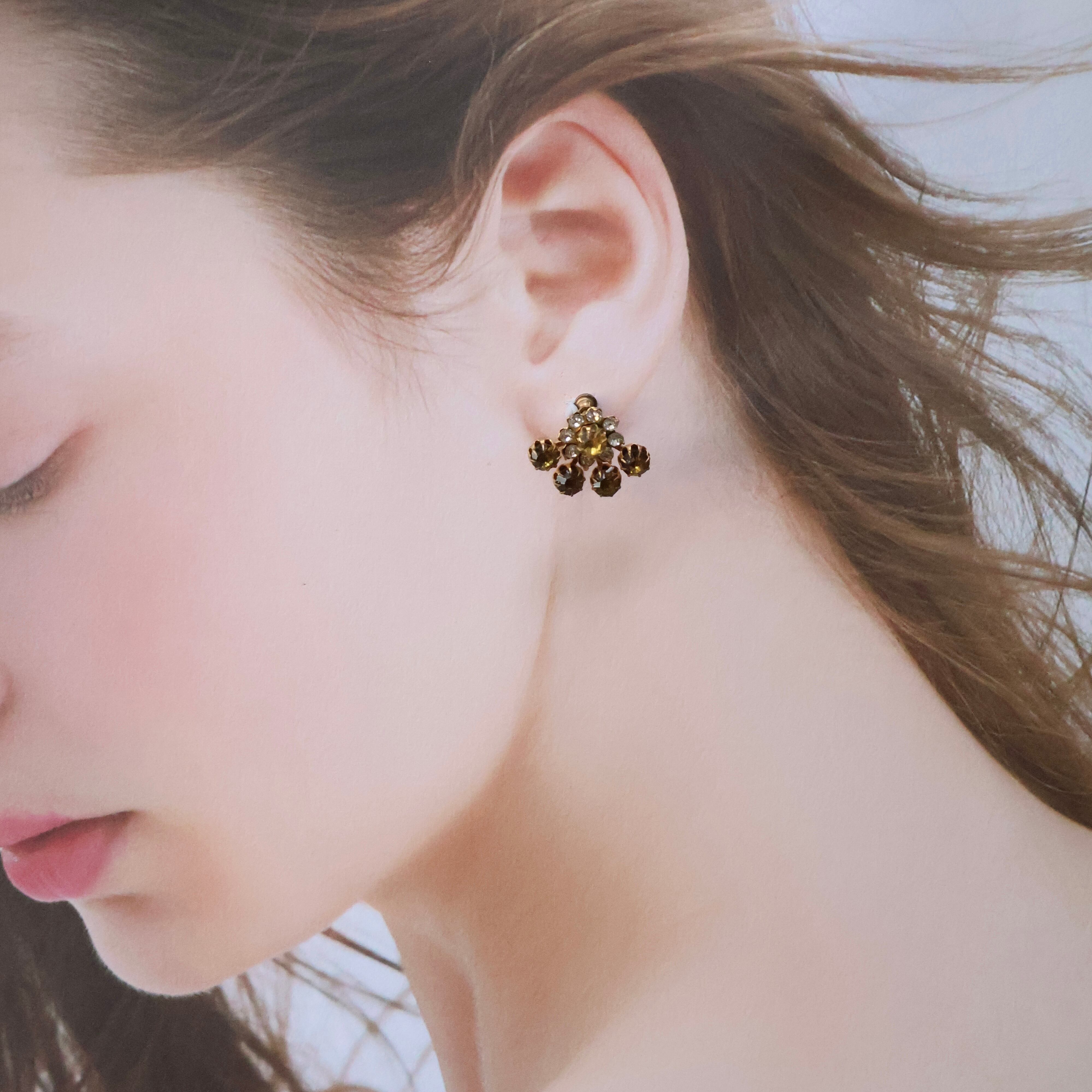中央で高貴な光を放つシトリンカラーを主役に、シャンパンやアンバーのクリスタルがたわわに連なります。