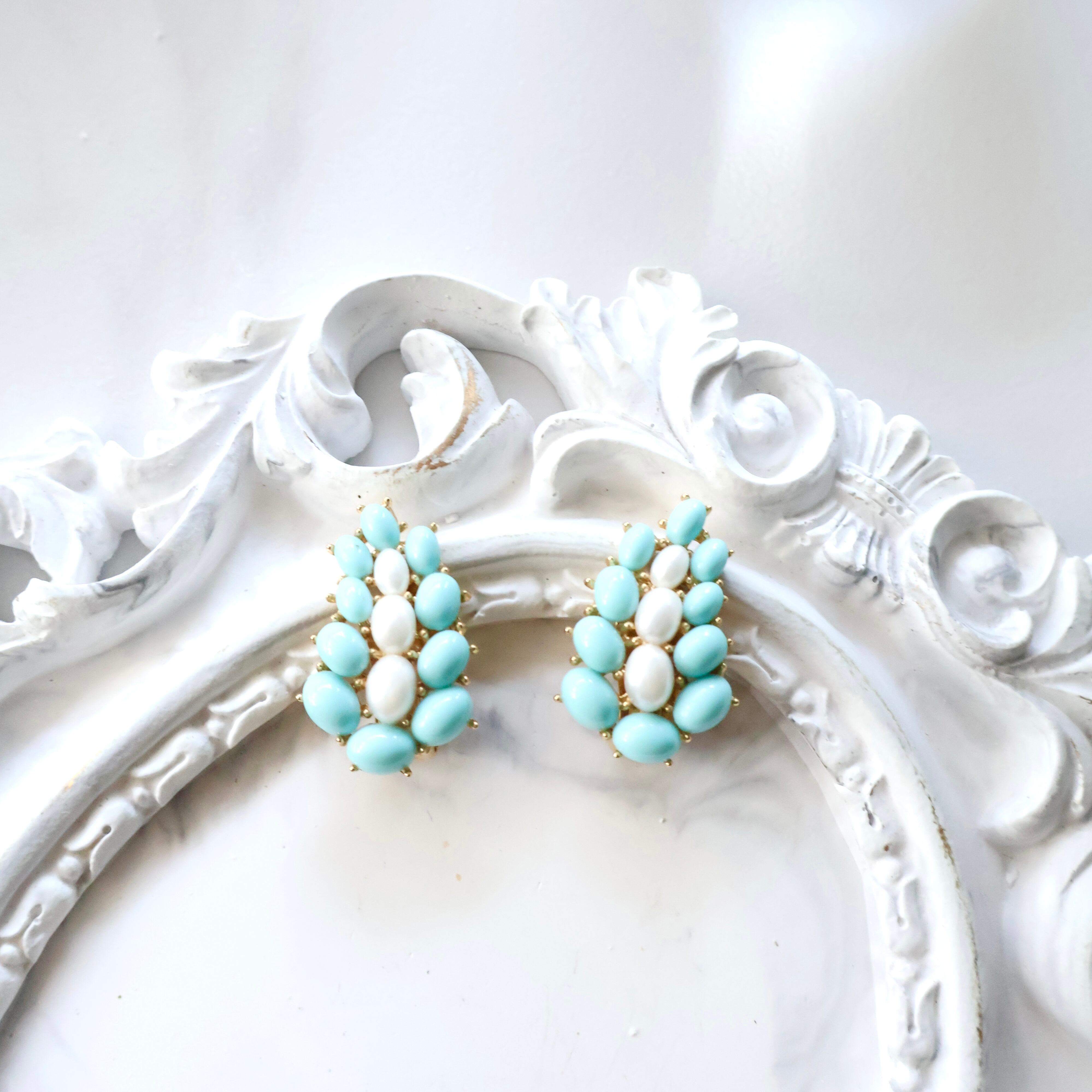 【 TRIFARI 】1960s ヴィンテージ CROWN TRIFARI ターコイズ×パールイヤリング