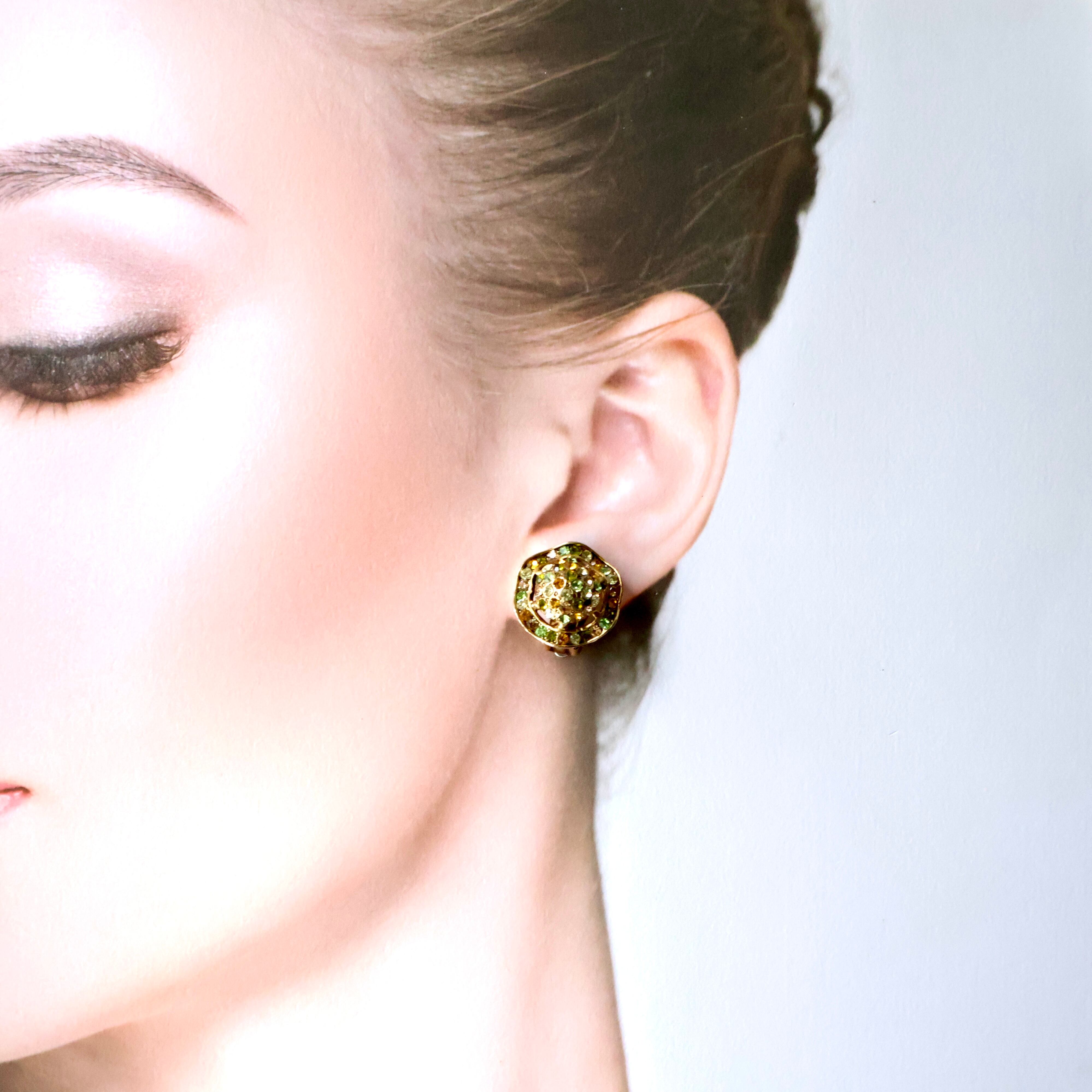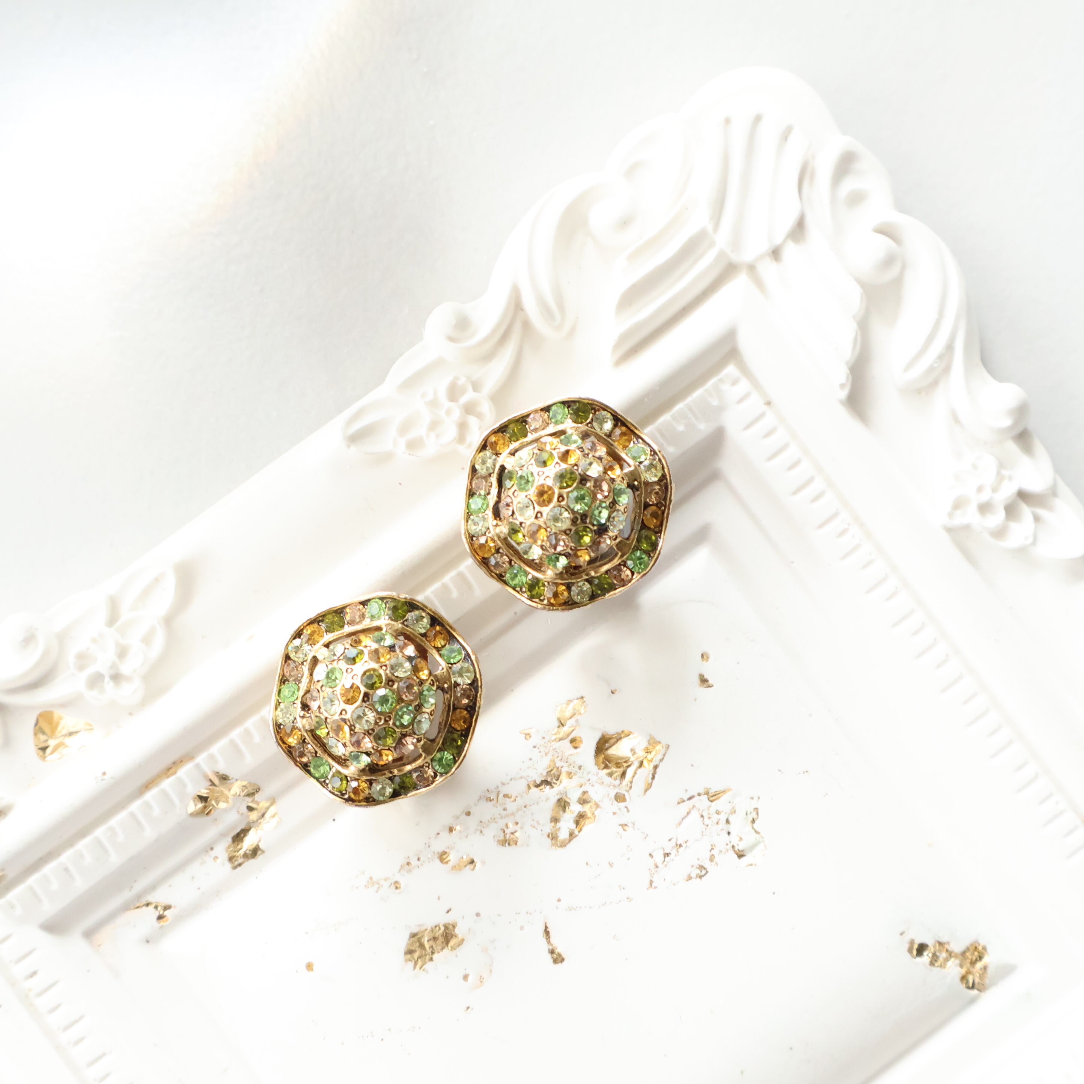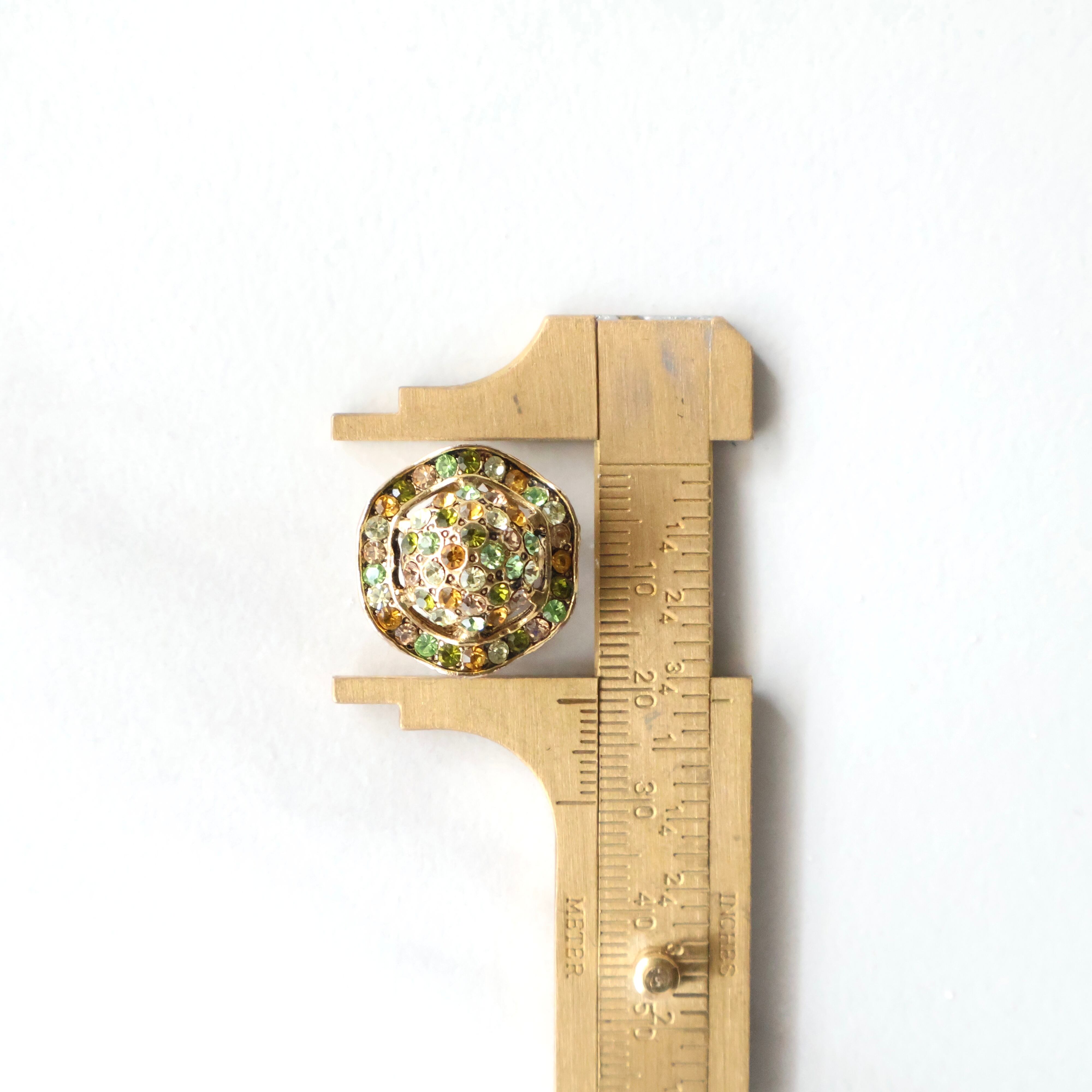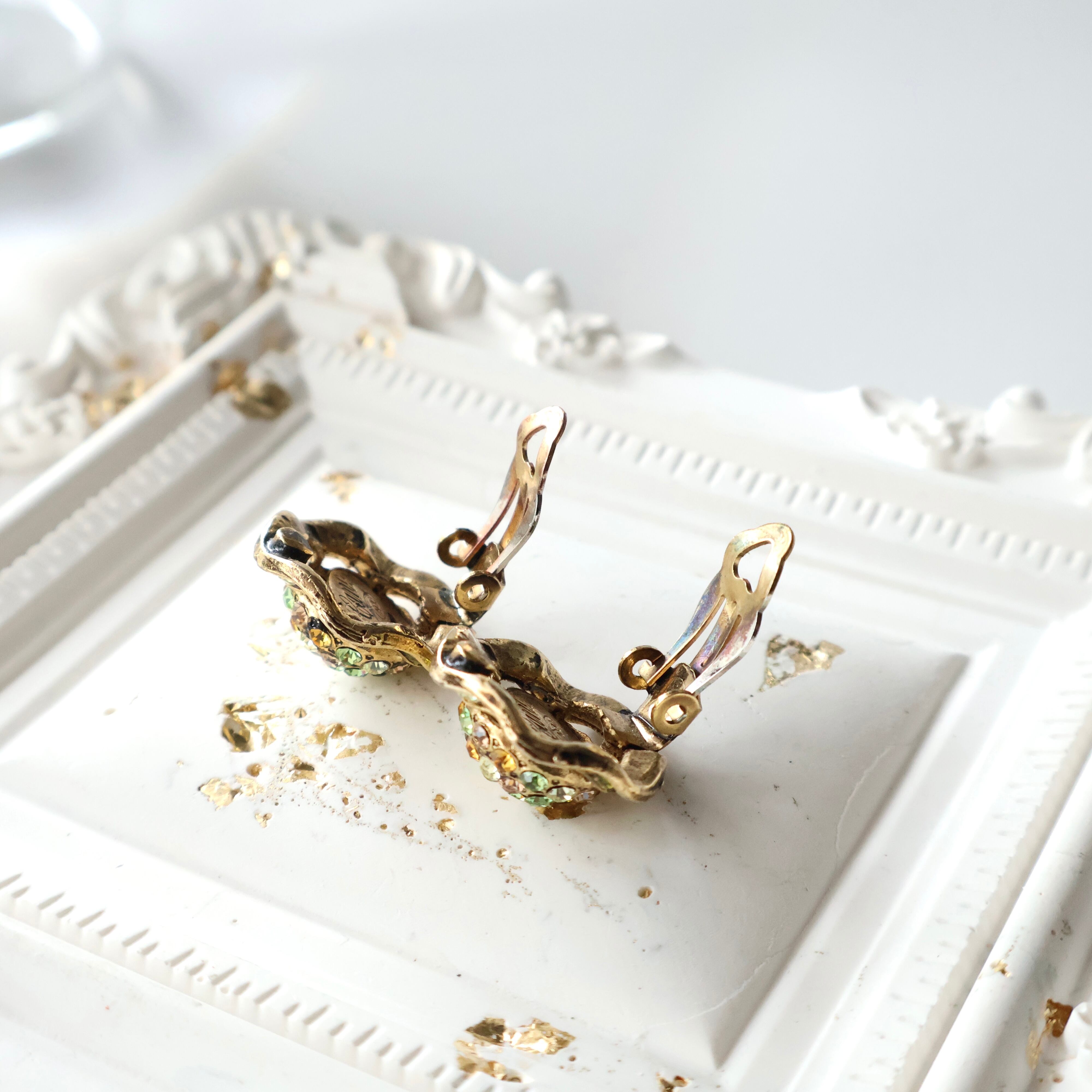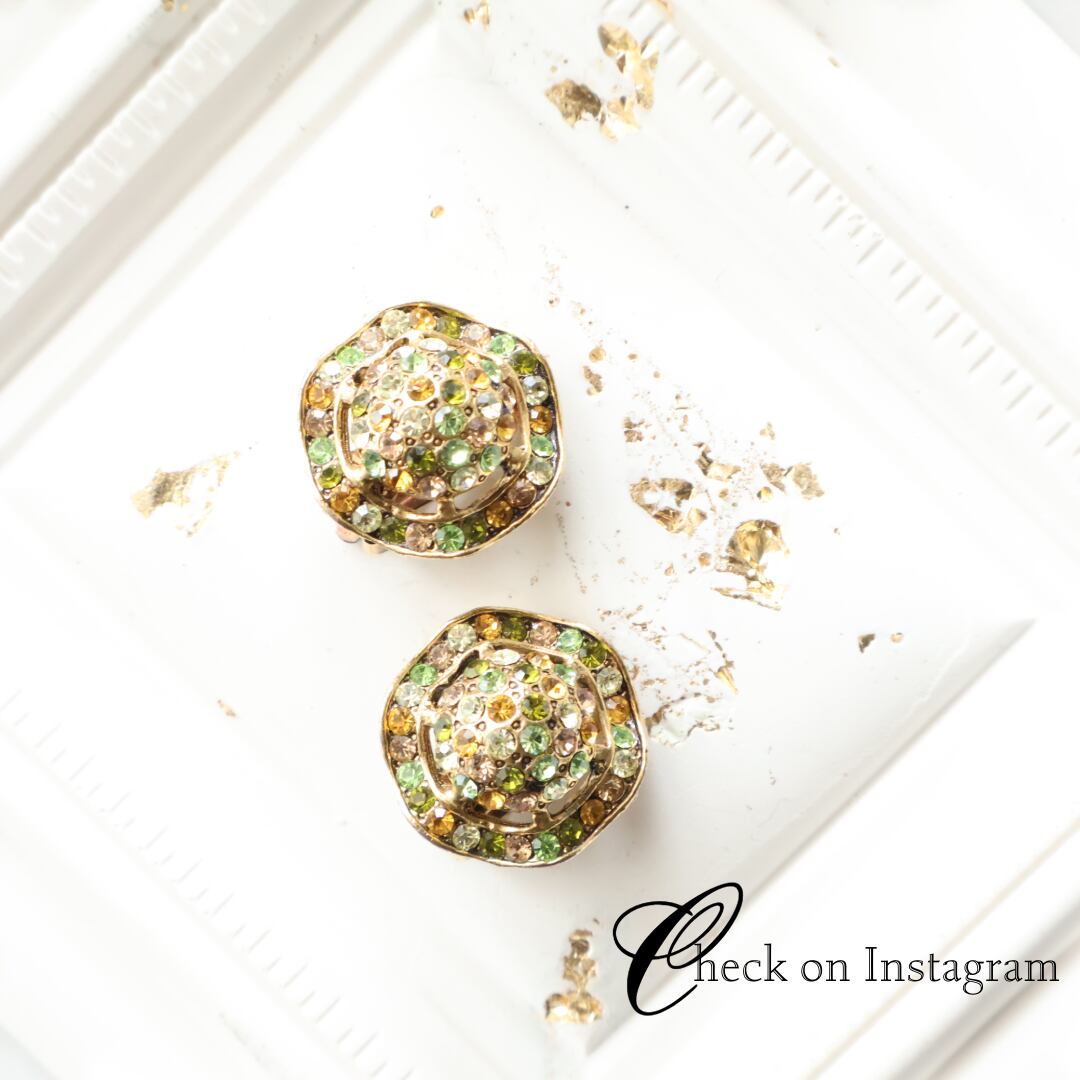【Cano】1960s ヴィンテージ グリーン×アンバー マルチカラー ラインストーン クリップイヤリング